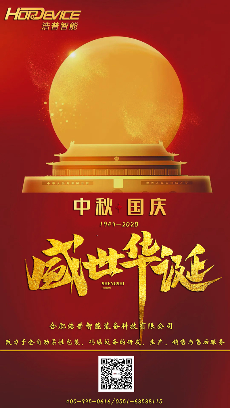 在2020年中秋節(jié)、國慶節(jié)即將來臨之際,浩普智能董事長攜全體員工祝大家節(jié)日快樂!感謝大家長期以來對(duì)浩普智能的大力支持!