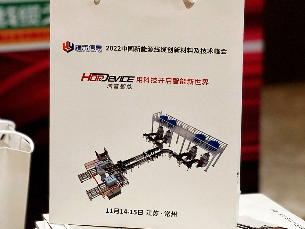 由山東雍禾信息技術(shù)有限公司主辦的“2022中國新能源線纜創(chuàng)新材料及技術(shù)峰會”,在2022年11月14-15日常州新城希爾頓酒店盛大召開。主要由來自電線電纜生產(chǎn)企業(yè)、電纜料生產(chǎn)企業(yè)、智能產(chǎn)線設(shè)備供應(yīng)商、認(rèn)證檢測機構(gòu)、線纜料助劑及輔料、原材料供應(yīng)商、科研機構(gòu)的相關(guān)專家、學(xué)者齊聚一堂,浩普智能有幸參加此次峰會,通過會議贊助、提問交流、產(chǎn)品展示、等多種形式進(jìn)行經(jīng)驗交流和分析。