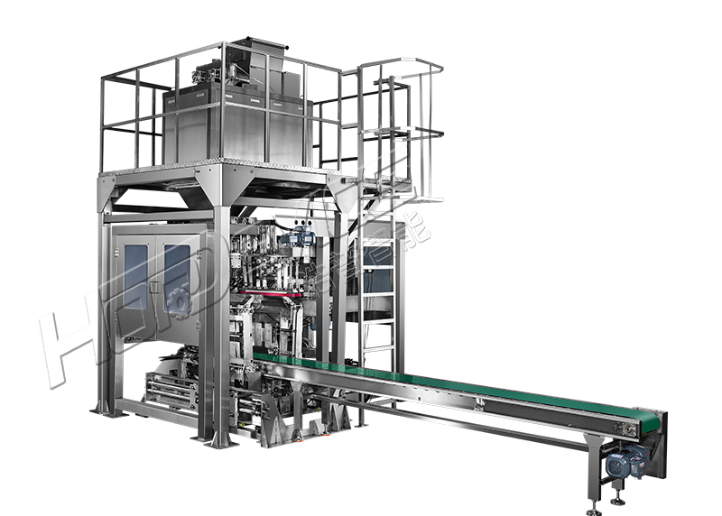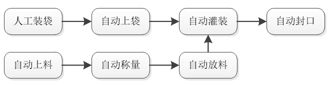 裝袋機:能自動連續(xù)取袋、開袋、自動檢測、自動裝袋等。電子定量秤內(nèi)放好的物料通過料斗計量后裝入料袋,并將料袋傳送到立袋輸送機上。該部機可實現(xiàn)氣爪手夾袋,真空吸盤開袋,正、負(fù)壓檢測自動棄袋等功能;